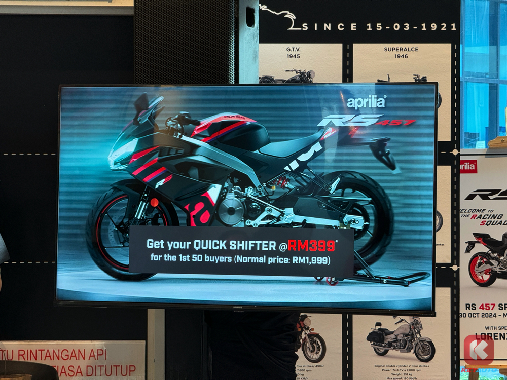 全新 Aprilia RS 457 现已在全国经销商开卖,首 50 位客户可享有 RM399 优惠价选配 Quick Shifter 快排系统,原价是 RM1,999。