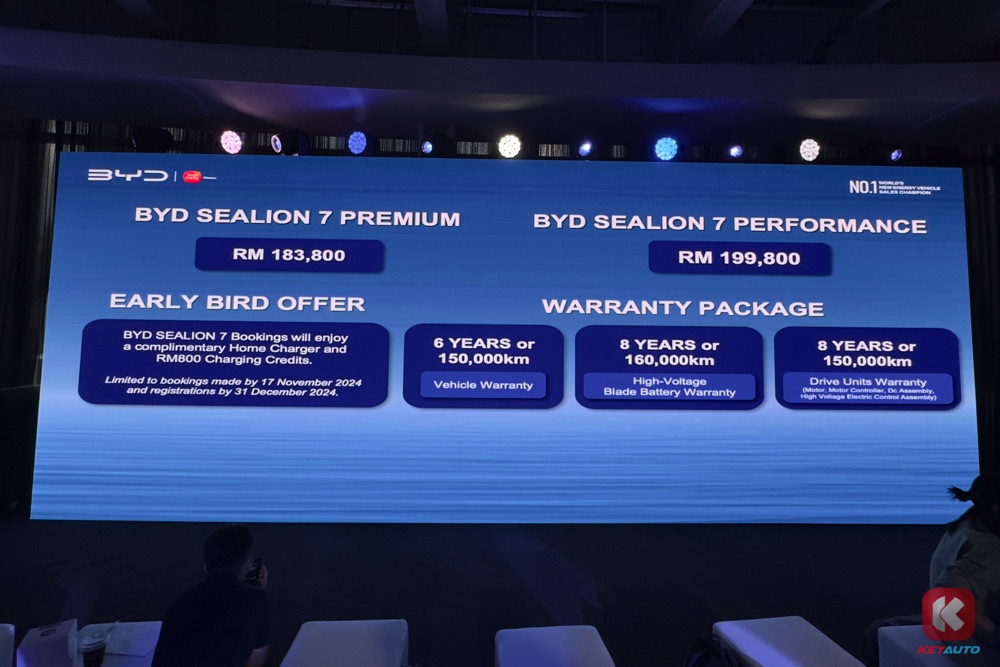 BYD SEALION 7 现已在全国 BYD 经销商开卖,新车可享有 6 年/150,000km 原厂保固、8 年/160,000km 电池保固,以及 8 年/150,000km 动力总成保固。