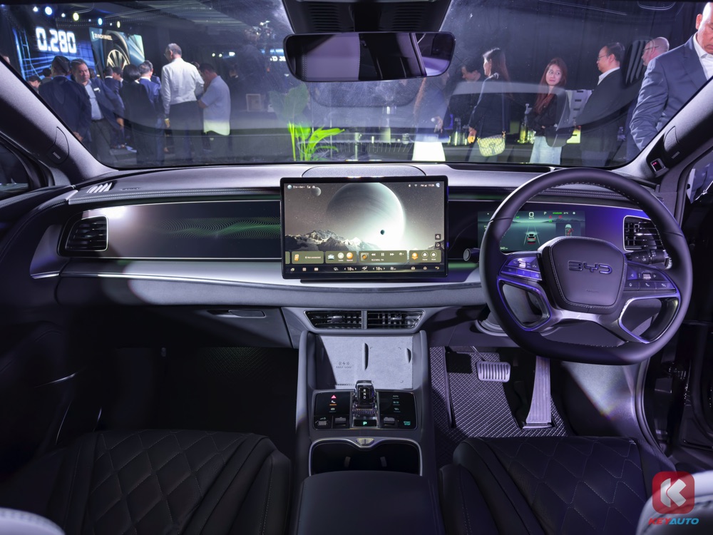 内饰也延续了 BYD 海洋系列的家族设计,配备皮革座椅、15.6 寸可旋转中空荧幕、Apple Carplay & Android Auto、DYNAUDIO 音响系统(12个扬声器)、气氛灯、双区域自动恒温空调,以及一系列 ADAS 驾驶辅助系统。