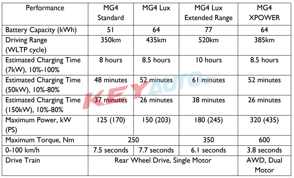 MG 4 在本地会提供 4 个版本,分别是 Standard、LUX、LUX Extended Range 和 X-Power,后者是搭载 AWD 双马达的高性能版本,其余版本则是采用 RWD 单马达配置。了解更多......