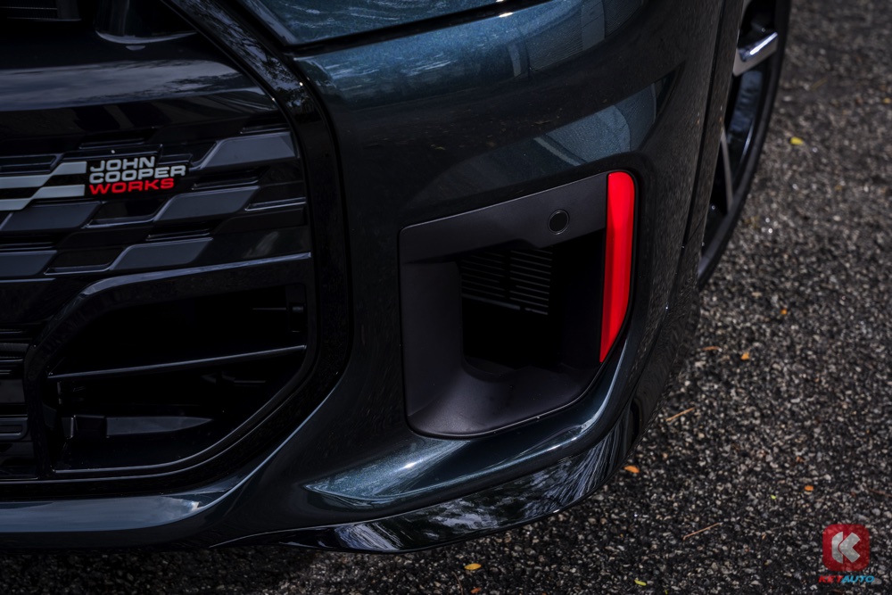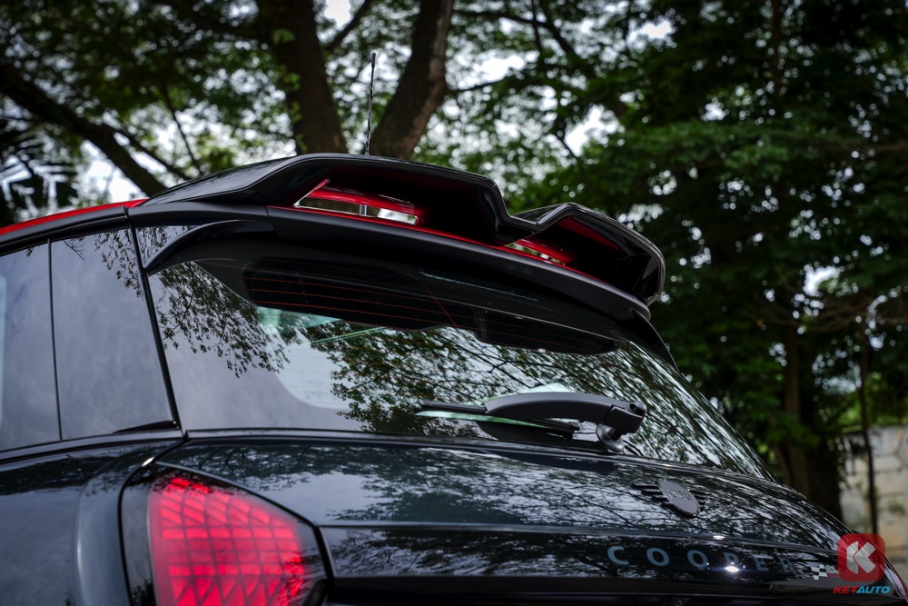 新款燃油 JCW 车型采用黑红搭配,包括黑色浅格栅,红色车顶、红色后视镜盖、红色引擎盖饰条和红色煞车卡钳。车尾配有独特后扰流板和中央排气管。