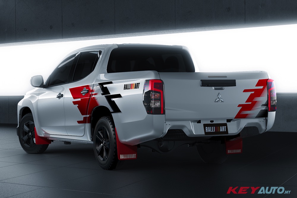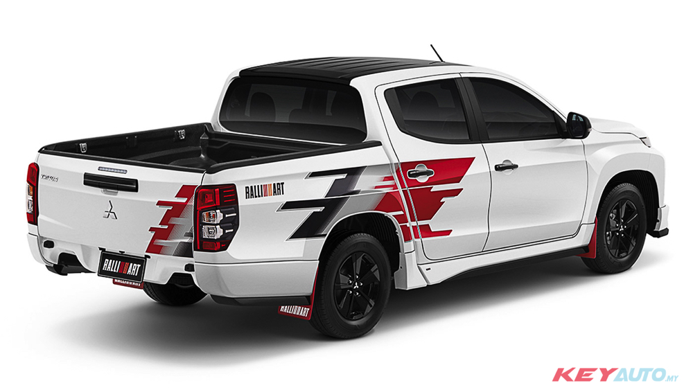 Triton Ralliart 特仕版获得多个专属配件,包括 Ralliart 专属拉花、标志性红色挡泥板,以及 Ralliart 专属外观套件,并在水箱护罩、轮框、后视镜外盖、车门把手等进行黑化处理,提升其运动气息。