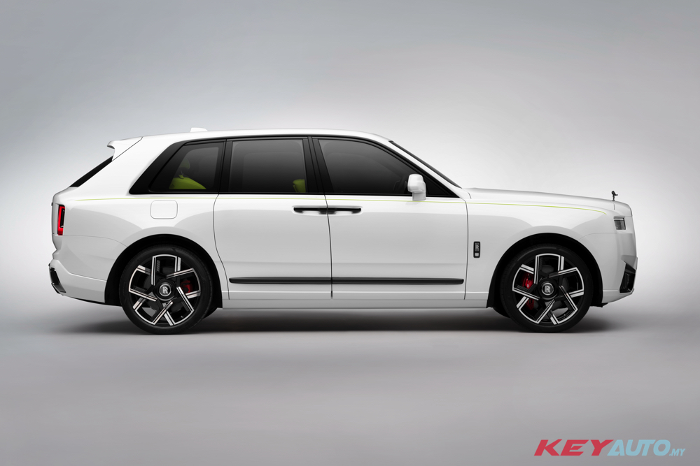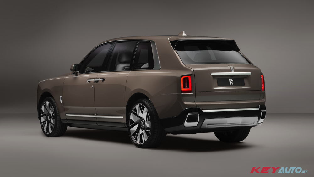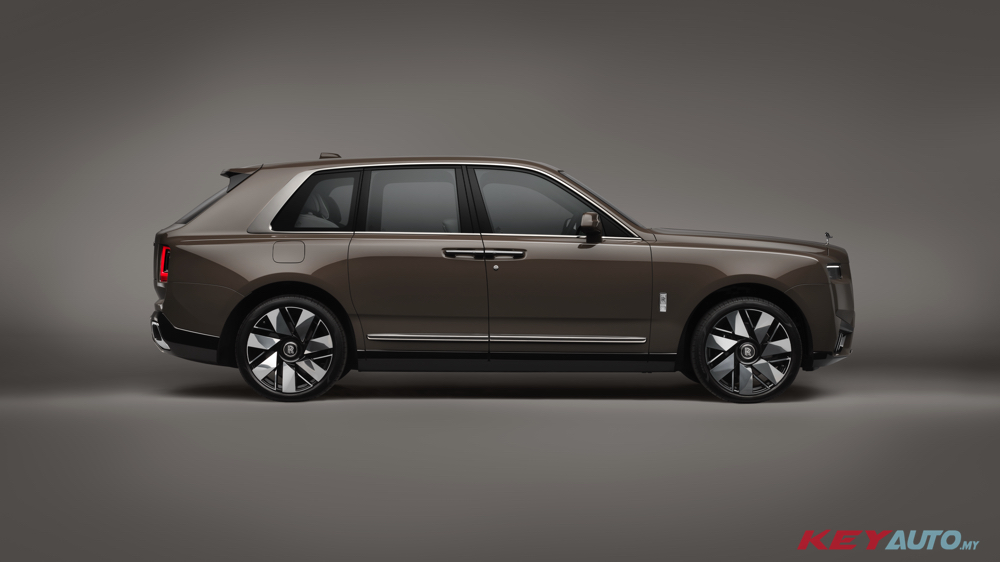Cullinan 首次配上尺寸更大的 23 寸轮圈,每个轮圈均由铝锭铣削制成。另外,原厂也添加了新车色 Emperador Truffle(松露石纹棕)。