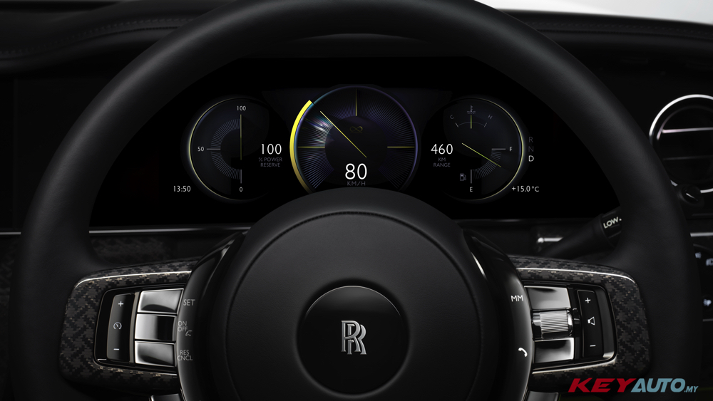 内装变化较为明显,全玻璃面板横跨整个仪表台,仪表盘和中控荧幕经过重新设计,采用了 SPIRIT “奢华数字架构”,集成了 Rolls-Royce 私人会员应用程序 Whispers。