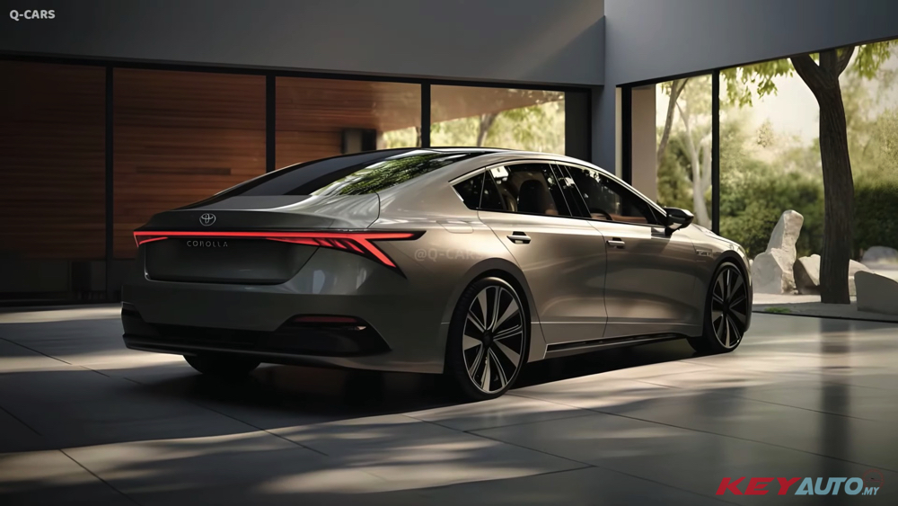 根据 Q Cars 的预想图来看,大改款 Corolla 将跟进家族化设计语汇,前脸造型与 Crown、Prius 、Camry 等相似,车尾导入斜背设计,具备时下流行的贯穿式 LED 尾灯,营造出焕然一新的动感样貌。