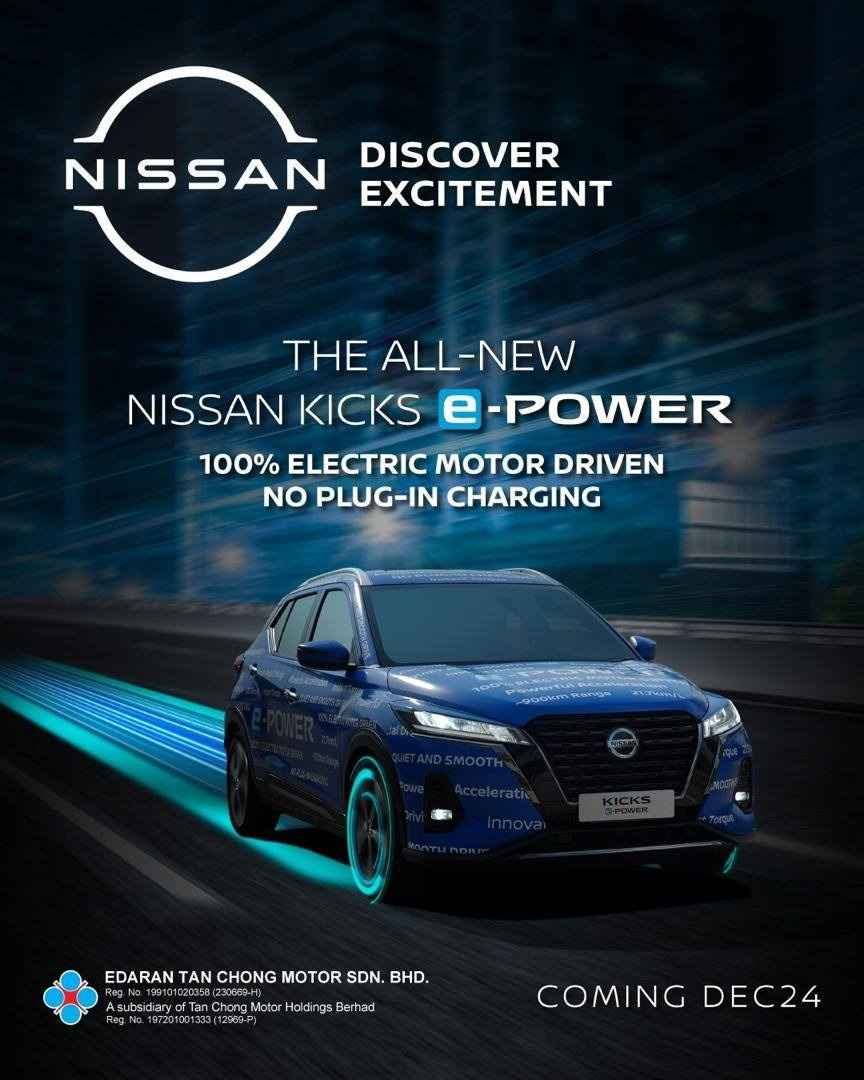大马 Nissan 总代理 Edaran Tan Chong Motor (ETCM)在今年5月份把搭载 e-POWER 系统的 Nissan Kicks 带到 2024 大马车展上,当时只是展示,并未透露车子是否会进入本地市场。不过,根据社交媒体上的消息,新车或将在 12 月 24 日在本地发布!
