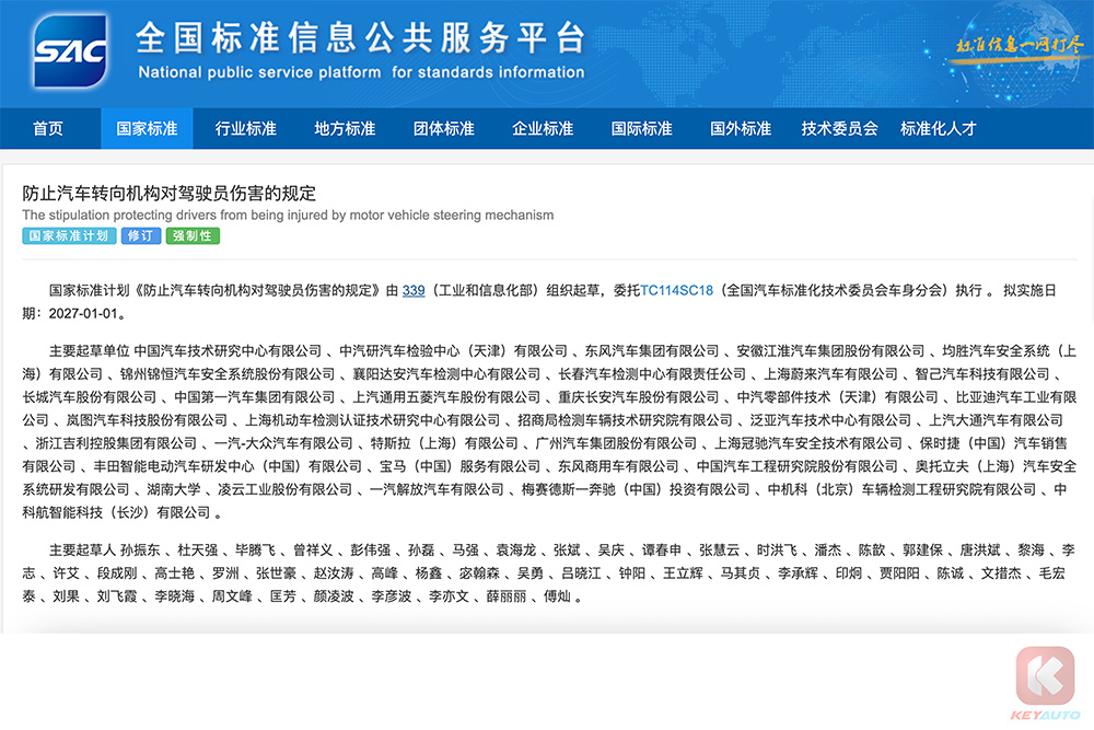 近日,中华人民共和国工业和信息化部(中国工信部)发布强制性国家标准报批稿——《防止汽车转向机构对驾驶员伤害的规定》(标准编号:GB 11557-202X)。简单概括这项法案,该标准主要针对车辆在碰撞情况下,转向机构对驾驶员头部及胸部可能造成的伤害风险进行规范,通过测试限值与结构要求降低二次伤害的风险。