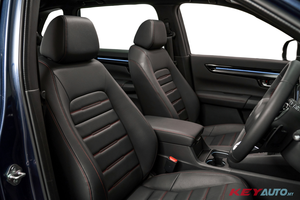 油电版 CR-V e:HEV 则是采用性能更强大,燃油效率更高的最新 i-MMD 油电系统,搭载 2.0L i-VTEC 引擎 + 双电动马达,综效输出高达 184PS/335Nm,配上 e-CVT 变速箱,由于锂离子电池组在尾厢下方,因此 RS 版本没有提供备胎。