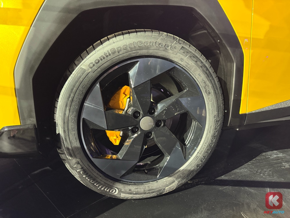 OMODA O4 Ultra 选用了亮眼的 Electro Yellow 作为车身配色,再以运动化配件与标准版 OMODA 4 区分开来。车子新增了大型前分流器、侧裙、碳纤维后视镜盖、巨大的尾翼,以及运动化后扩散器。足下搭载的是全新 19 寸合金轮圈,还有与车身颜色匹配的黄色煞车卡钳。
