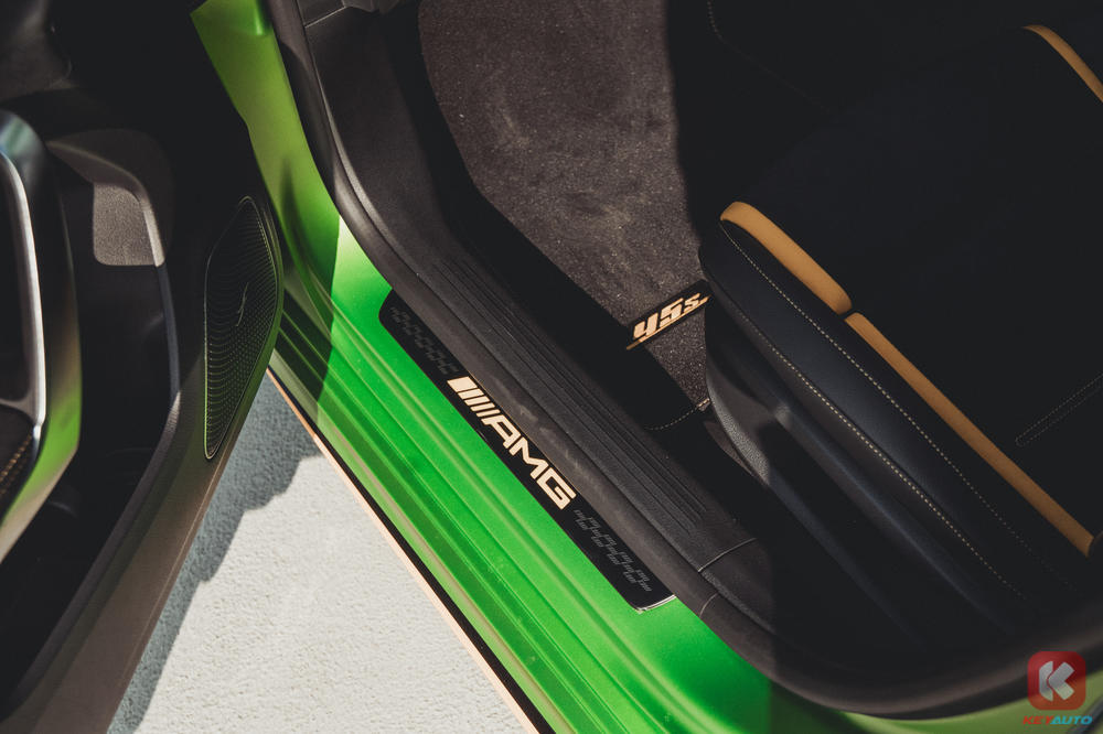 Its' AMG door sills have their AMG pattern design in black and illuminate the AMG logo in yellow and AMG floor mats come with yellow '45 S' stitched lettering.