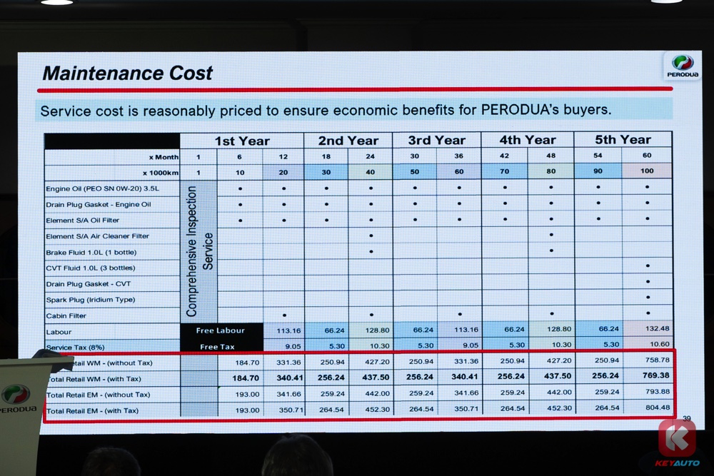 每 12 个月保养时,还需更换冷气滤网,该次保养加上滤网费用,数额为 RM340.41。车子每两年需要更换空气滤芯以及刹车油,加上早前的费用,每满两年的保养费用将提高至 RM347.50。