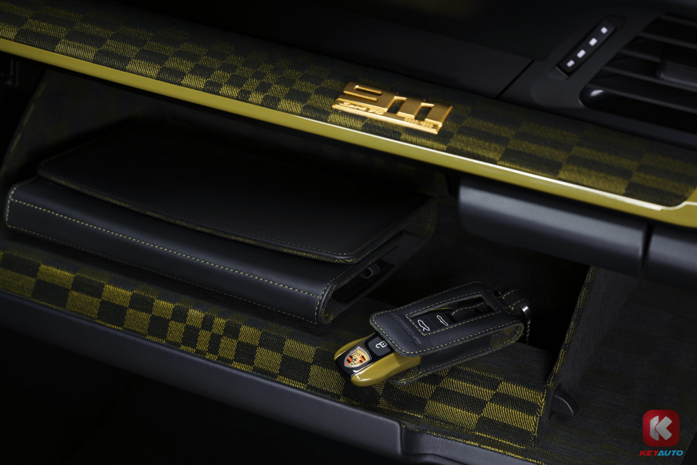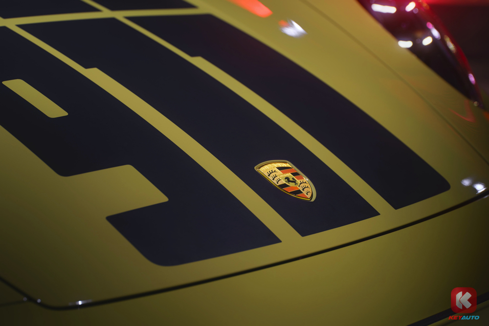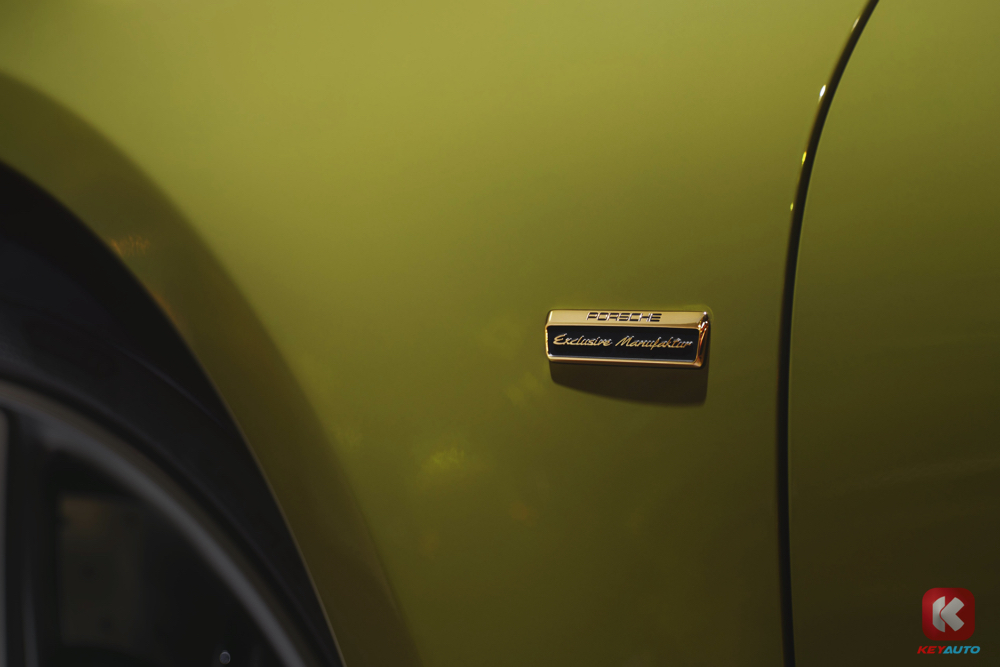 前翼子板 "Porsche Exclusive Manufaktur" 金标、后格栅源自 1950 年代 356 车型的里程纪念徽章,构建多重历史维度。