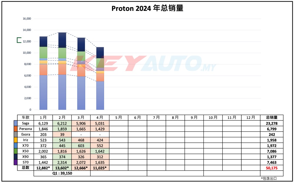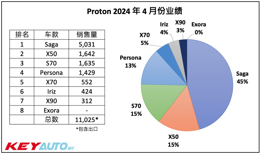 Proton 在 2024 年首四个月的销量表现强劲,共卖出 50,175 辆新车,市占率达 19.2%,继续稳守大马汽车销量排名第二。