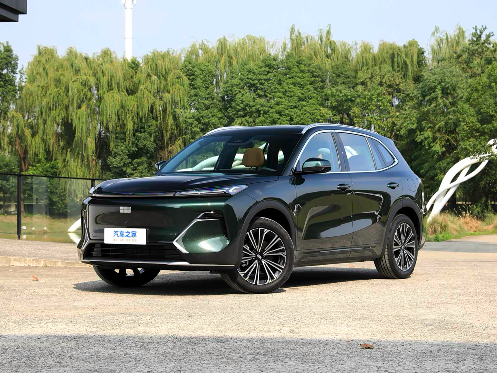 参考中国双生车 —— 吉利银河星舰7,该车有也相似的配色,名为 “拂柳绿”,一款暗沉低调的绿色。