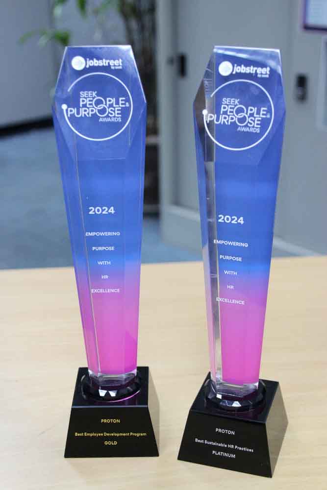 Similarly, the People & Purpose Awards 2024 by SEEK, which celebrates passionate and purpose-driven HR practitioners in Malaysia, honored Proton’s HCD with Platinum in Best Sustainable HR Practices and Gold in Best Employer Development Program. The former award applauds Proton's practices that balance business objectives with employee well-being, driving organizational goals. The latter validates Proton's in-house training programs and career development initiatives.