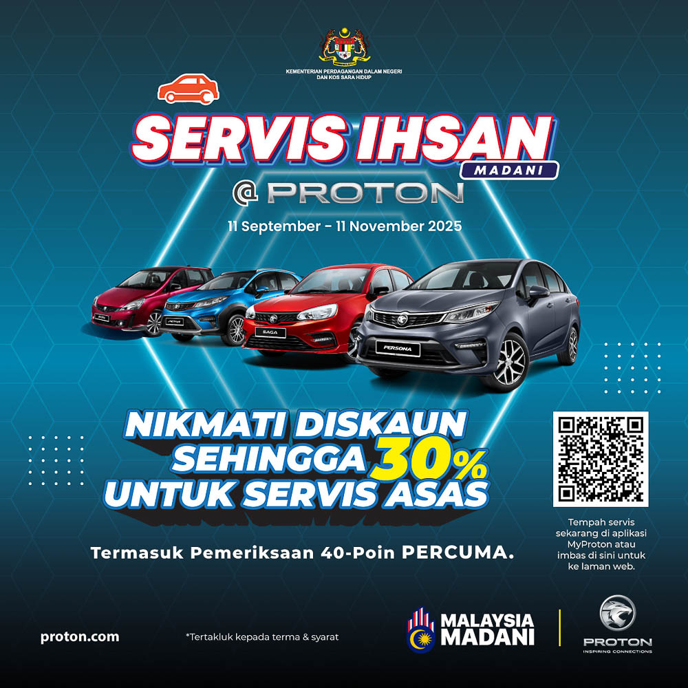 The “Servis Ihsan MADANI” Service Campaign is available at all authorised Proton service centres nationwide until 11 November 2025. Customers can learn more or book appointments through www.proton.com or by contacting their nearest Proton service outlet.