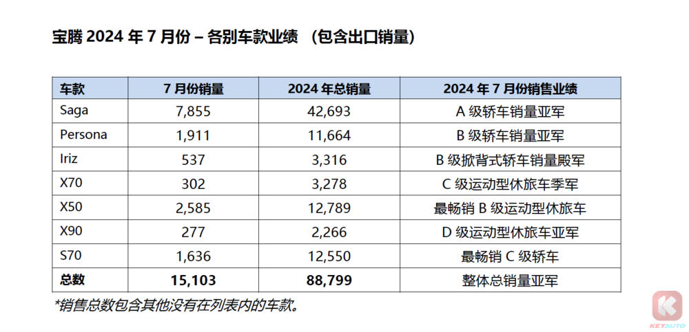 截至 2024年 7 月 底,宝腾的累积销量达 88,799 辆,而品牌在7 月份的市场份额预计将提升至 20.5 %。