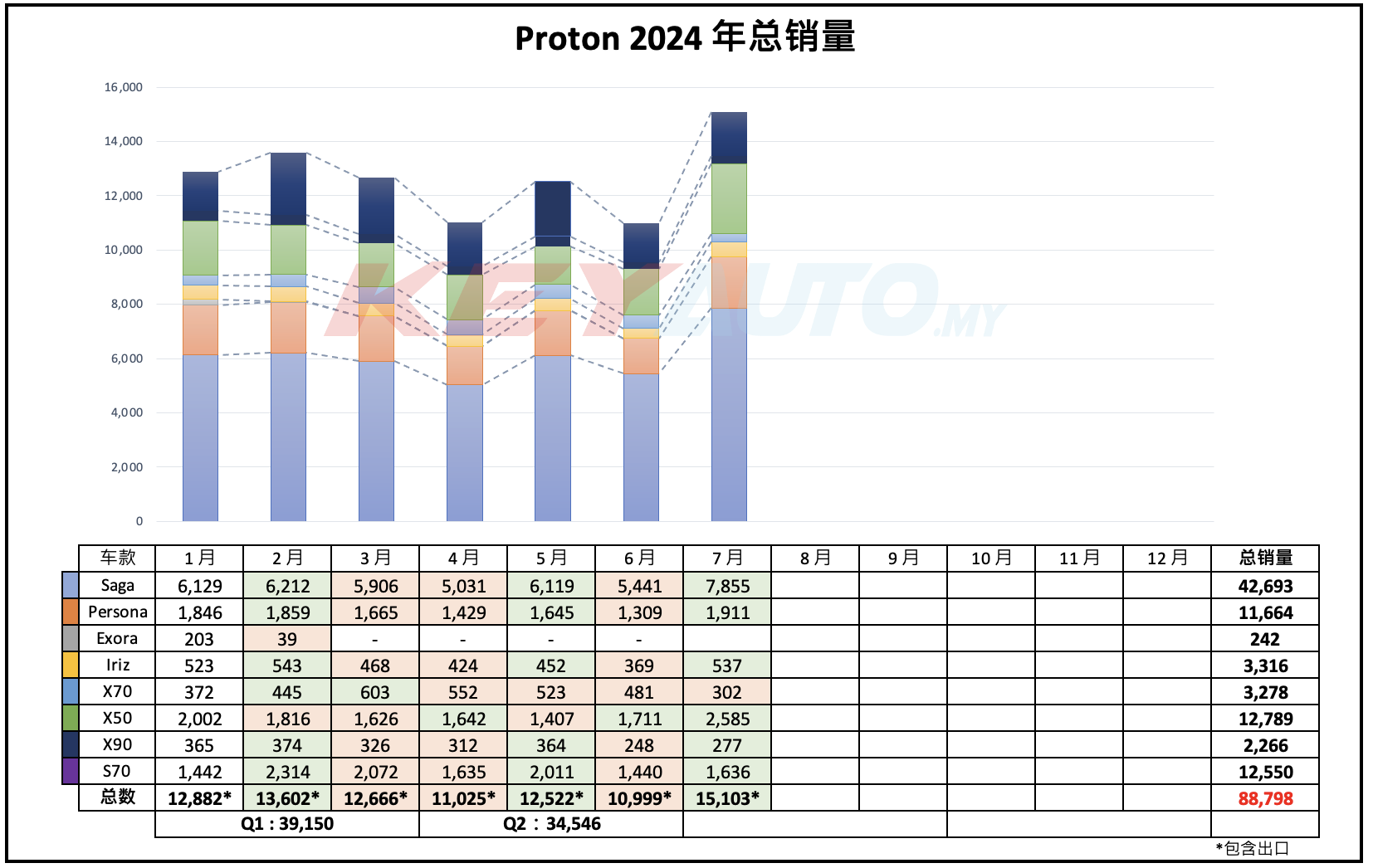 马来西亚第一国产车宝腾( Proton )在今年下半年开局强劲,7 月份销量创下自 2022 年 9 月以来最高月销售记录,达 15,103 辆(国内和出口)。