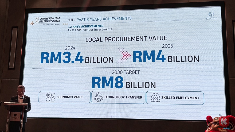 Proton 在 2024 年向本地供应商采购高达 34 亿令吉的零部件,2025 年的采购额增加至 40亿令吉。品牌的目标是在 2030 年将本地零件采购额增加到 80亿令吉。李春荣表示这能为本地汽车业创造就业机会以及经济价值。