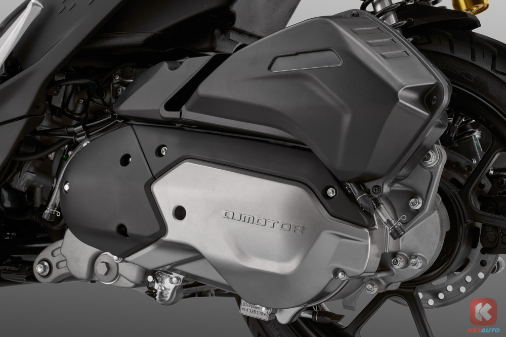 AX200S 搭载着一个实际排量 175cc 的单缸水冷引擎搭配 CVT,能够输出 17hp(8,500rpm) 和 15.2Nm(6,500rpm),以小排量城市通勤踏板车来说,这套动力总成可说相当强劲。