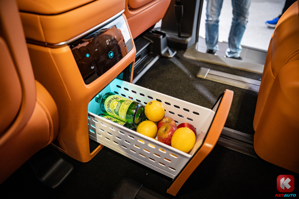MPV 最大的看点就是第二排的舒适性,WEY 80 对第二排配有总裁椅、小桌板、皮革座椅、座椅加热与通风功能、座椅按摩功能、12.5L 小型冰箱、全景式天窗等。