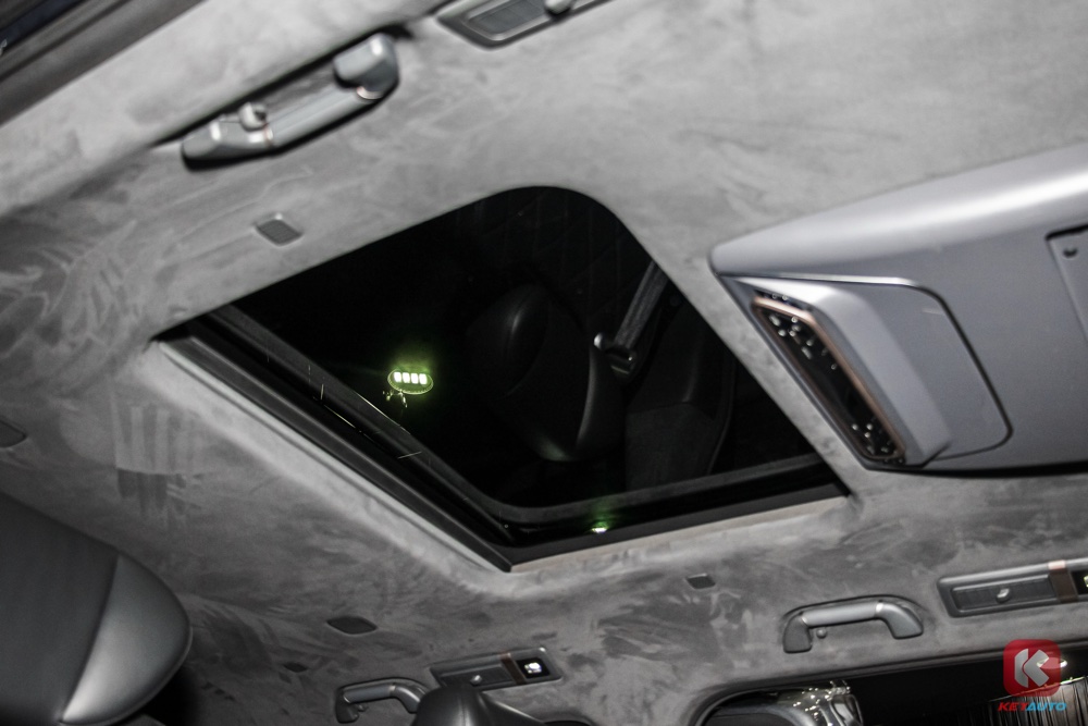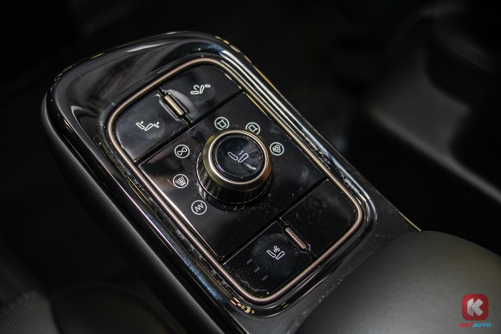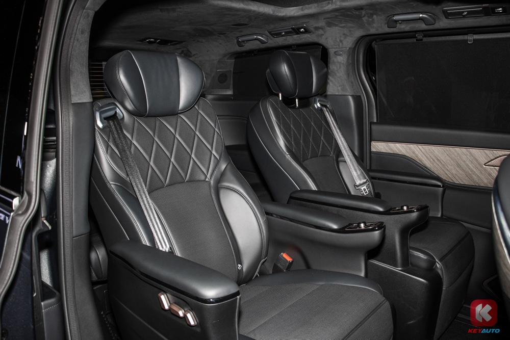 第二排依旧配备总裁椅、小桌板、皮革座椅、座椅加热与通风功能、座椅按摩功能、12.5L 小型冰箱、全景式天窗等。