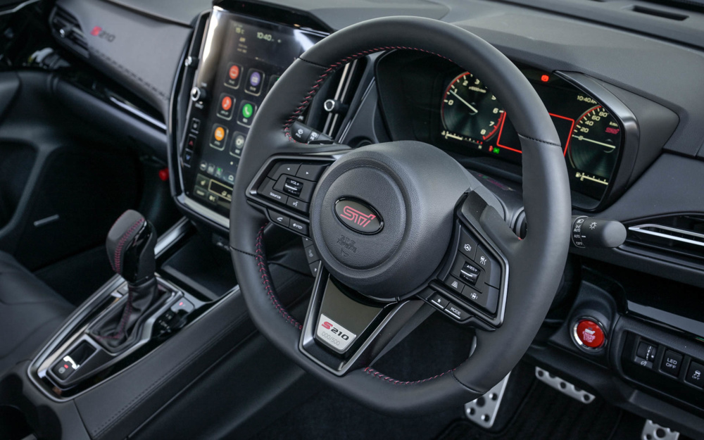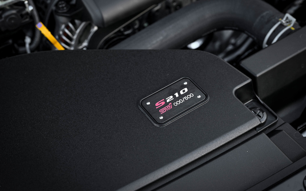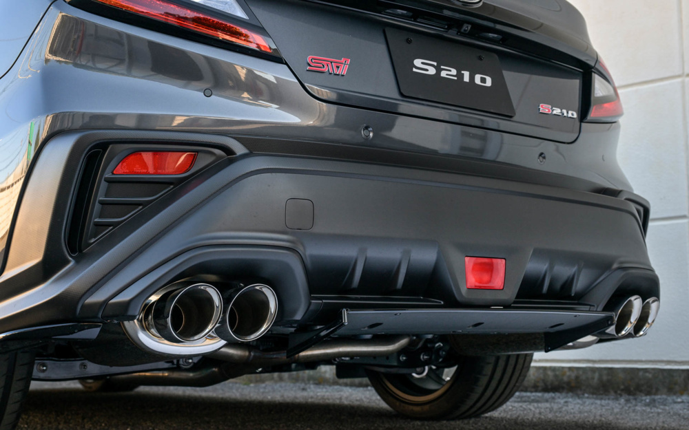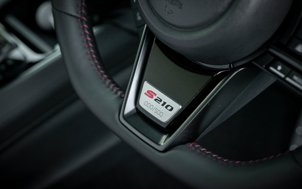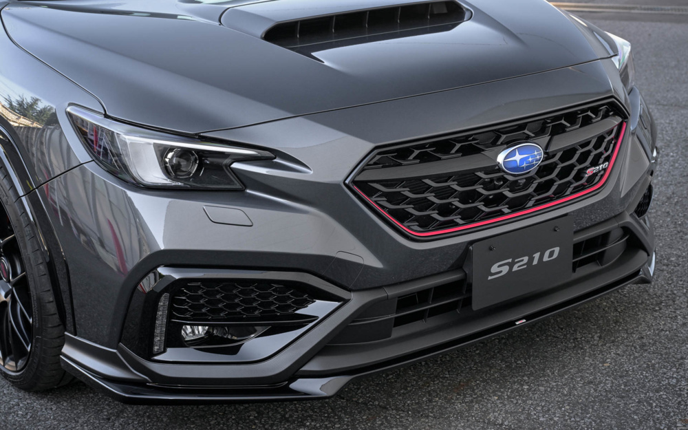 S210 以 WRX S4 STI Sport R EX 为基础,升级了动力、底盘和外观设计,带来更好的驾驶体验。车子延续 WRX 的运动化外观,新增 STI 专属空力套件,包括前扰流器、侧裙和后分流器。水箱护罩加入 STI 标志性红色饰条,车尾配有加大的碳纤维尾翼,配备 19 寸 Michelin Pilot Sport 4S 高性能轮胎,以及红色六活塞 Brembo 卡钳。