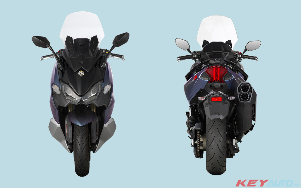 On the other hand, the Maxsym TL508 big scooter, like the Husky 150, it is also featuring front and rear ABS, traction control system, a TFT meter, a USB Type-A port, keyless ignition, and the front and tail lights are LEDs as well.