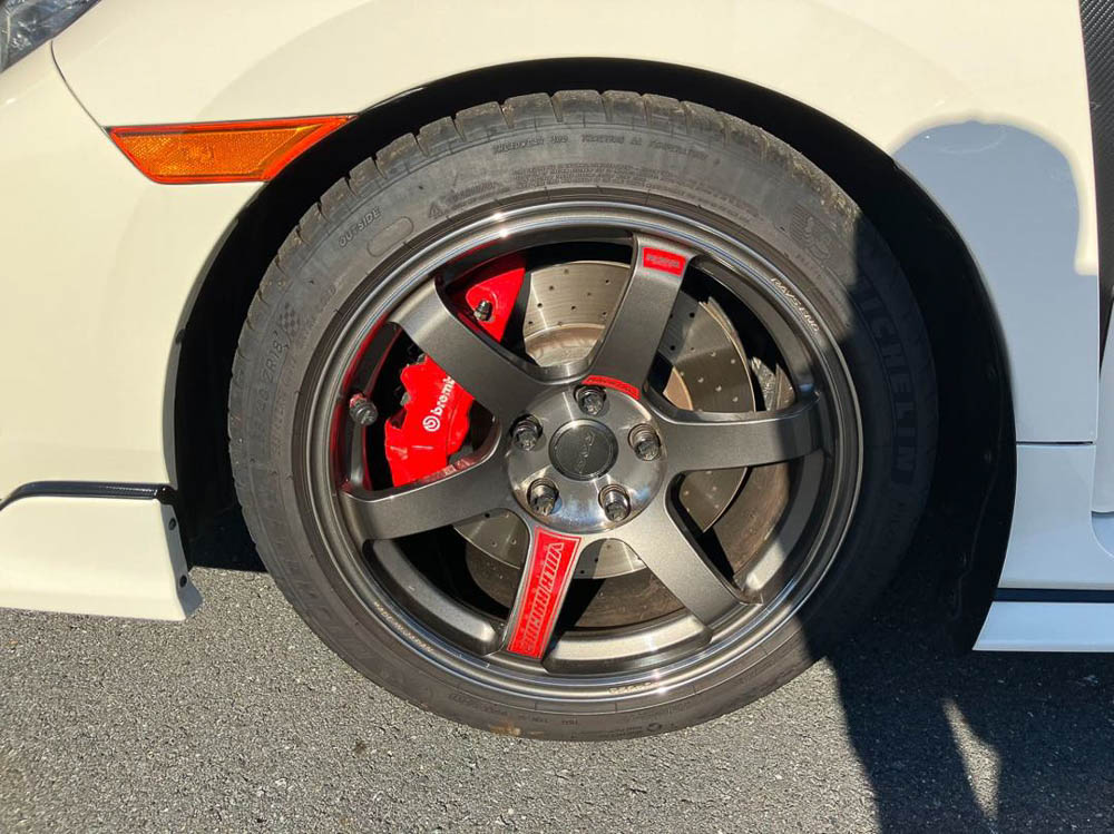 This unregistered 2019 Honda Civic FK8R Type R Mugen packs a punch with a two-litre VTEC turbocharged engine, delivering an impressive 318 brake horsepower and 400 Nm of torque, paired with a six-speed manual transmission. The car also boasts several modifications, including: