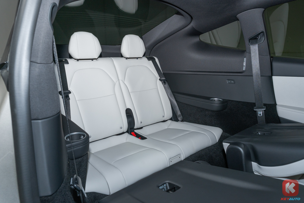 其他配备还有前排手机无线充电面板升级至 50w + 30w 同步快充(带有风冷散热功能)、前排与第二排座椅加热与通风功能、16 寸中控荧幕、每个座位设专属充电口、18具扬声器和 1 具低音炮。放倒后座两排座椅,尾箱空间高达 2539L。