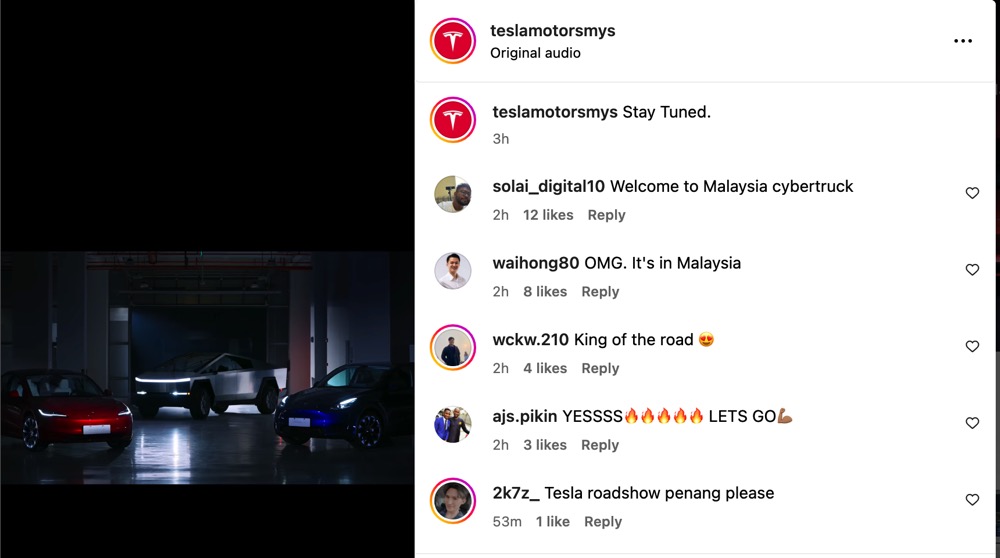 Tesla Malaysia 在社交平台上发布预告,万众期待的 Cybertruck 即将来马,敬请期待!