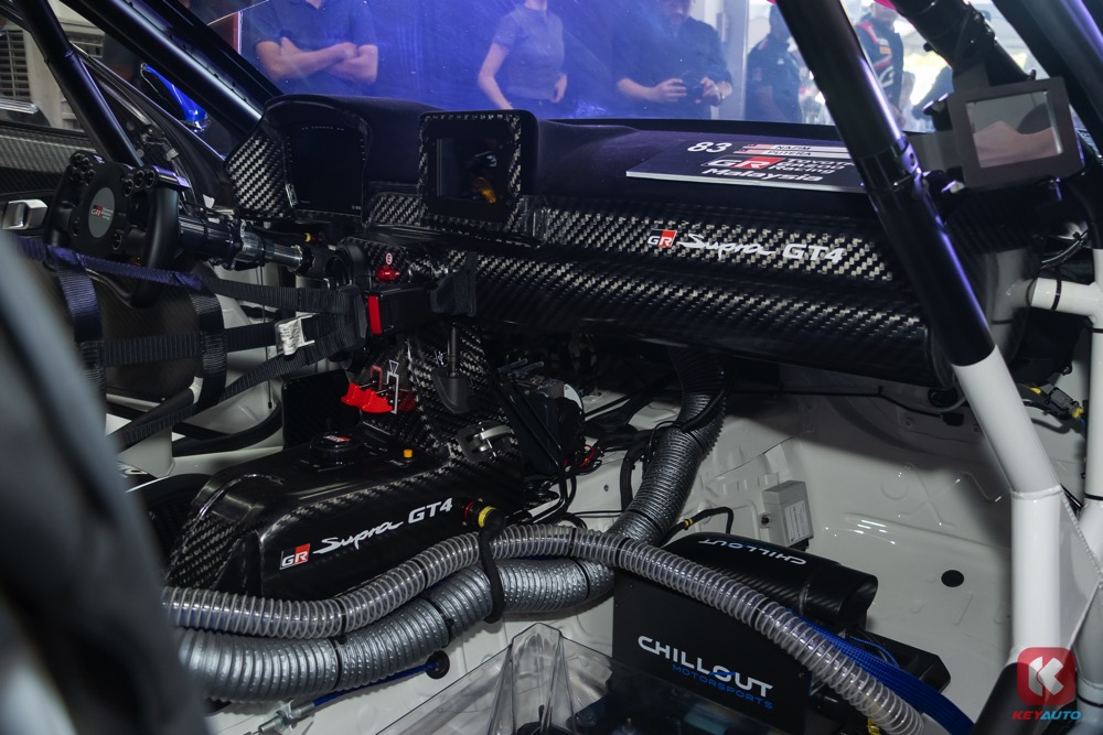 此次的参赛车型 Toyota Supra GT4 EVO2 在 2024 年登场,在收集了全球车队于车手的回馈后,进一步提升车辆的性能和操控性。 相比起上一款 Supra GT4 EVO,EVO2 针对 ABS 系统进行了调校,提升煞车与过弯表现,可适应不同赛道情况。同时,车子也优化了车舱温度控制,并 针对转速匹配(rev-matching)进行了调整,减少将挡时间,提升了煞车过程中的减速控制。