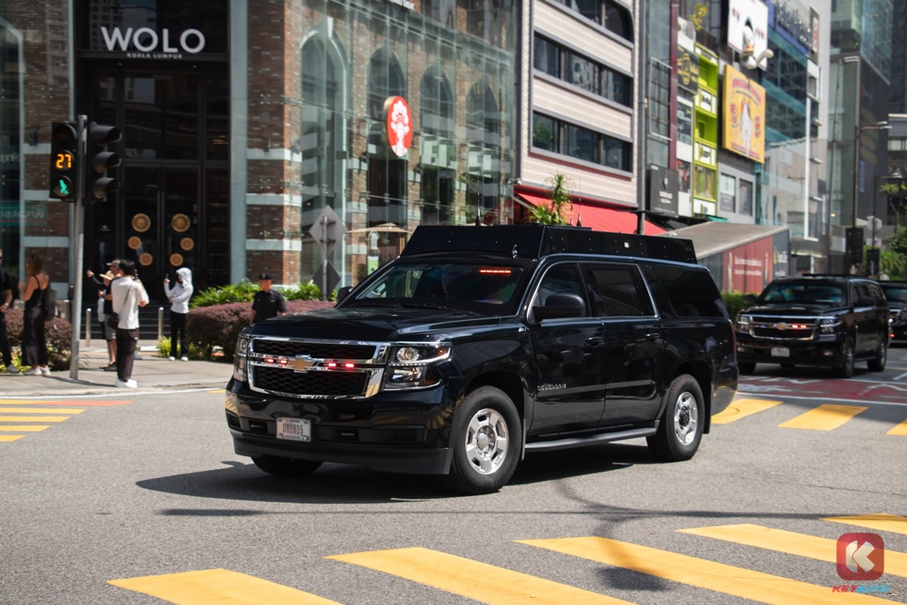 特朗普此次访马也打破了美国总统安全准则,特别邀请我国首相安华共乘专车 “野兽”,一同到吉隆坡会议中心出席第 47 届东盟峰会。据了解,大马出动了逾 50 辆车护送特朗普车队。敬请锁定 KeyAuto.my