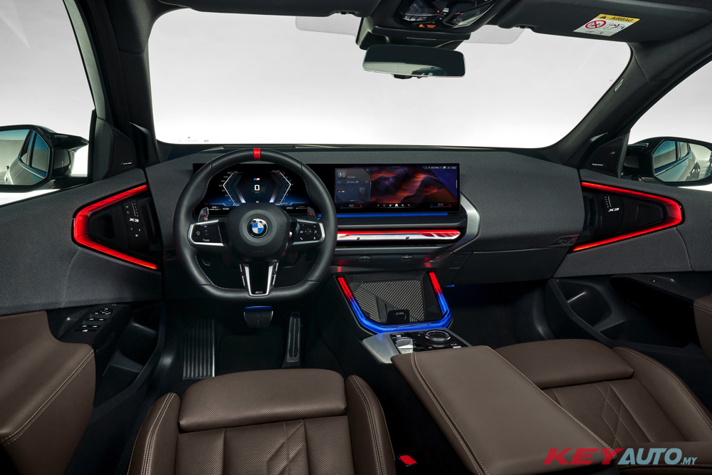 进入内装,全新 X3 采用新的材质进行包裹 ,换上新的平底方向盘和运动座椅,并在中控台和车门位置加入水晶装饰的氛围灯,营造出满满的高级感。