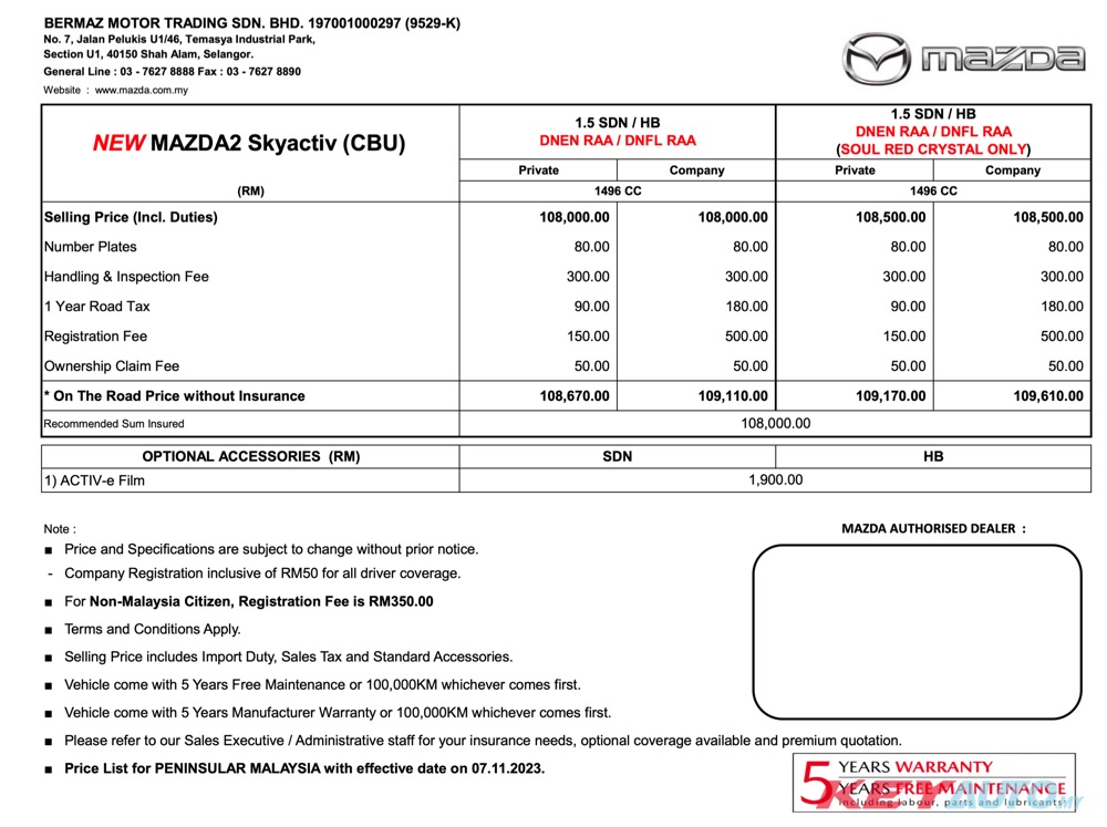The New Mazda2 comes as CBU from Thailand with a selling price that starts from RM 108,670 (OTR without insurance).