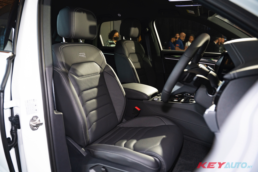 Touareg 在本地获得 R-Line 运动套件和 20 寸轮圈,标配 IQ Light HD Matrix 头灯组、IQ.DRIVE 驾驶辅助系统、夜视功能、自动升降的空气悬吊、730W Dynaudio 高级音响(14 个扬声器)。