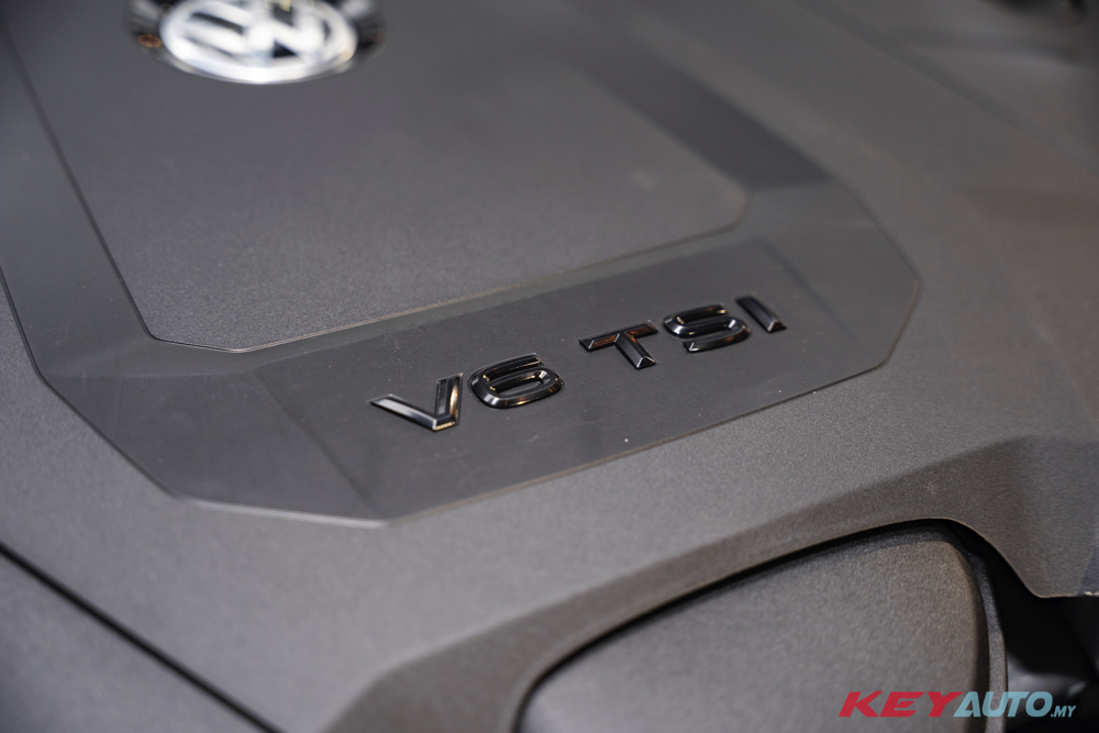 动力部分,搭载 3.0L TSI V6 汽油引擎,可输出 340PS/450Nm,配上 8AT 变速箱和 4MOTION 四驱系统,0-100km/h 加速只需 5.9 秒。
