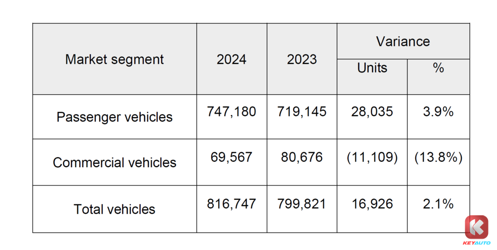 在 MAA 公布的数据中,2024 年的家用车销量为 747,180 辆,比 2023 年的 719,145 辆 增长了 3.9%。至于 2024 年商用车销量则比 2023 年下滑了 13.8%,全年只售出 69,567 辆。整体而言,2024 年的销量比前一年增长了 2.1%。