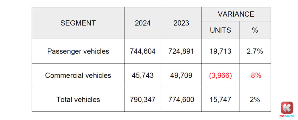 2024 年的新车行业总产量(Total Industry Production)达 790,347 辆,同比增长 2%。