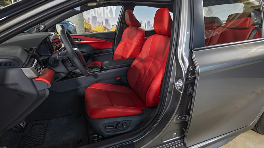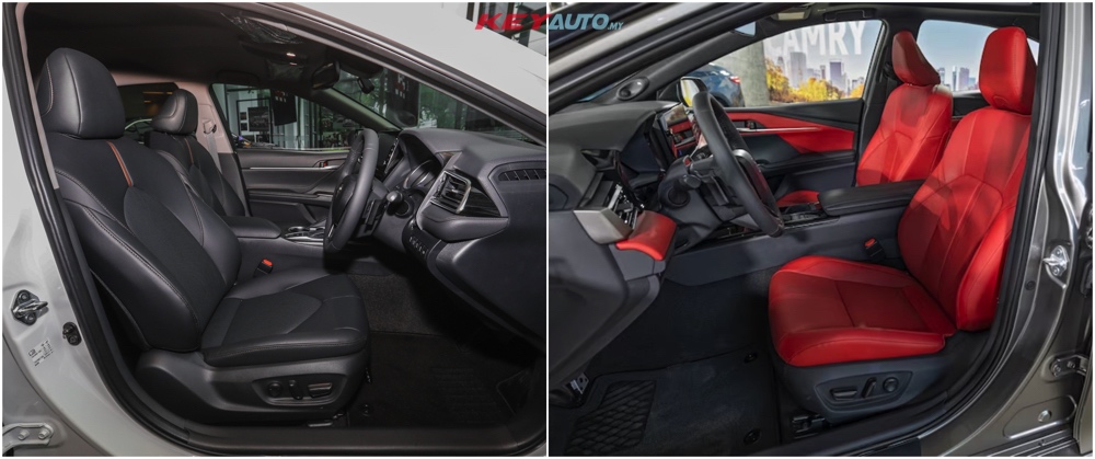 值得一提的是,第 9 代 Camry 在美国拥有 2 种设计风格,一种是运动风格,配备蜂窝网格栅、19 寸运动轮圈、黑色车顶、黑化套件、黑红色内装等;另一种是精致风格,采用横幅饰条格栅设计、18 寸轮圈、黑白双色内装等。