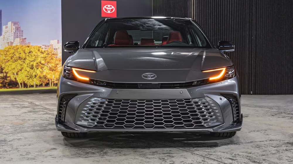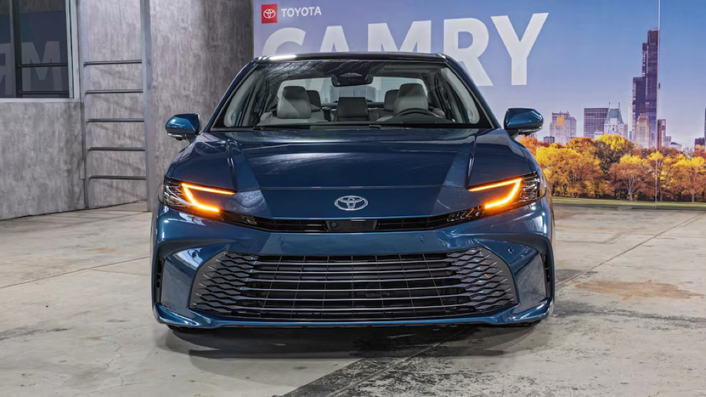 9 代 Camry 完全改头换面,采用最新的家族设计语汇,前脸设计与 Prius、Crown 相似,拥有 C 字造型的 LED 头灯组,并在两侧的下缘连接一起,搭配大面积的格栅,营造出更气派、更年轻的视觉感。