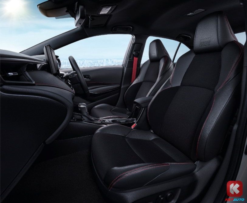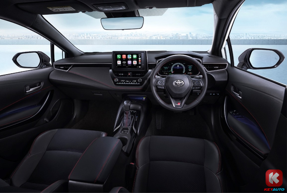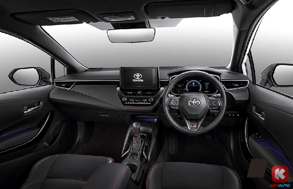 与一般 GR Sport 车型不同的是,Corolla Altis GR Sport 内装采用黑色内饰搭载红色缝线,方向盘和启动按钮上印有 GR 标志,座椅采用打孔式麂皮材质。其他配备包括 12.3 寸数码化仪表板、9 寸中控萤幕、HUD 抬头显示器、手机无线充电面板等。