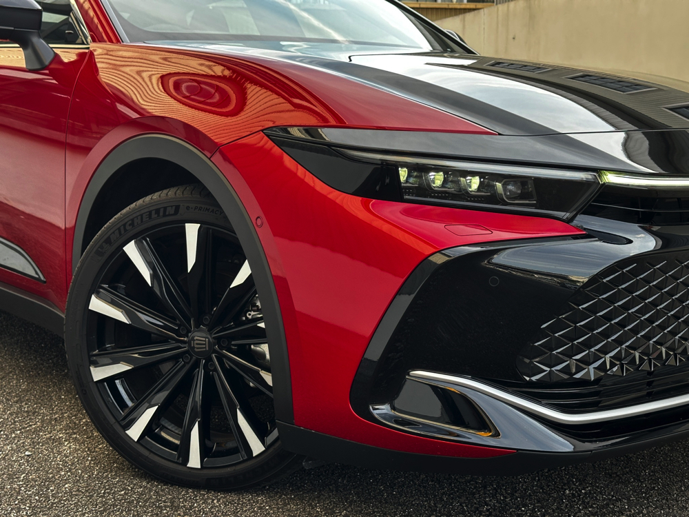 简单回顾,Toyota Crown Crossover 是一款结合了 Sedan 和 SUV 特点的 Crossover 跨界车型,基于 TNGA 平台打造,拥有动感奢华的双色外型,新世代内装设计简洁,整体质感不错。