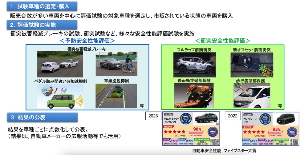 2024 年的评估项目增加了偏置正面碰撞测试、十字路口煞车缓解测试和模拟交叉路口事故测试。