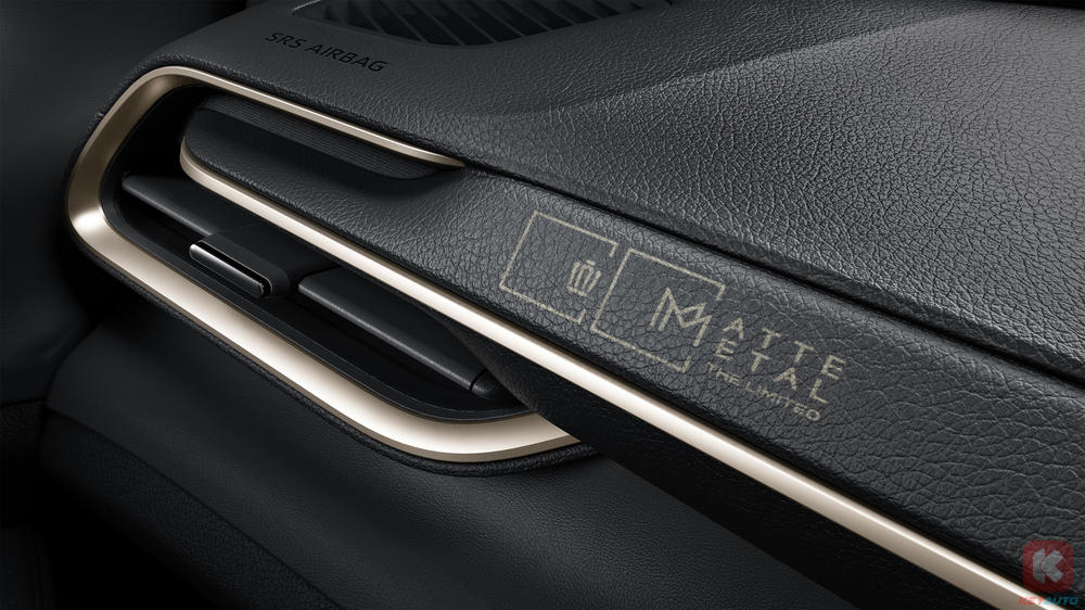车内也经过大量的客制化,内饰大部分采用黑色皮革,配以玫瑰金饰条和饰框,配上红色缝线座椅。副驾座前的中控台饰板上也用镭射写上 “The Limited Matte Metal” 字眼,彰显车子的特别之处。车子也搭载了数码钥匙,可通过手机应用程式解锁汽车。