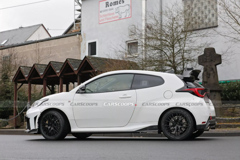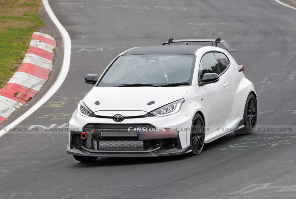 Carscoops 在 2024 年于德国纽伯格林赛道上发现了 GRMN Yaris 原型车正进行测试,从无伪装的原型车上可见,车子在标准版 GR Yaris 换上重新设计的保险杆,新增了进气口,车尾配了大型尾翼,车侧则新增侧裙和新轮圈。