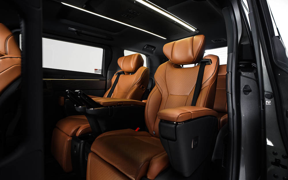 Additional refinements include a rotary table, enlarged armrests with integrated vanity mirrors and anti-vibration seat structures that elevate comfort during long journeys. The cabin is finished in premium Nappa leather, complemented by soft-touch materials and ambient ceiling lighting with 64 selectable colours. Exclusive to the flagship variant, the Sunset Brown interior adds a warm, contemporary character to the already luxurious space.