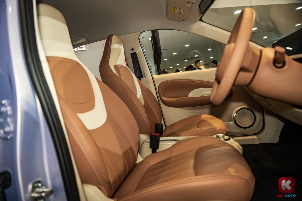 新车设有 3 种车色可供选择,包括 Milky White with Black Roof、Neon Blue with Black Roof 以及 Lavender Purple with Black Roof(仅限 Max 车型)。