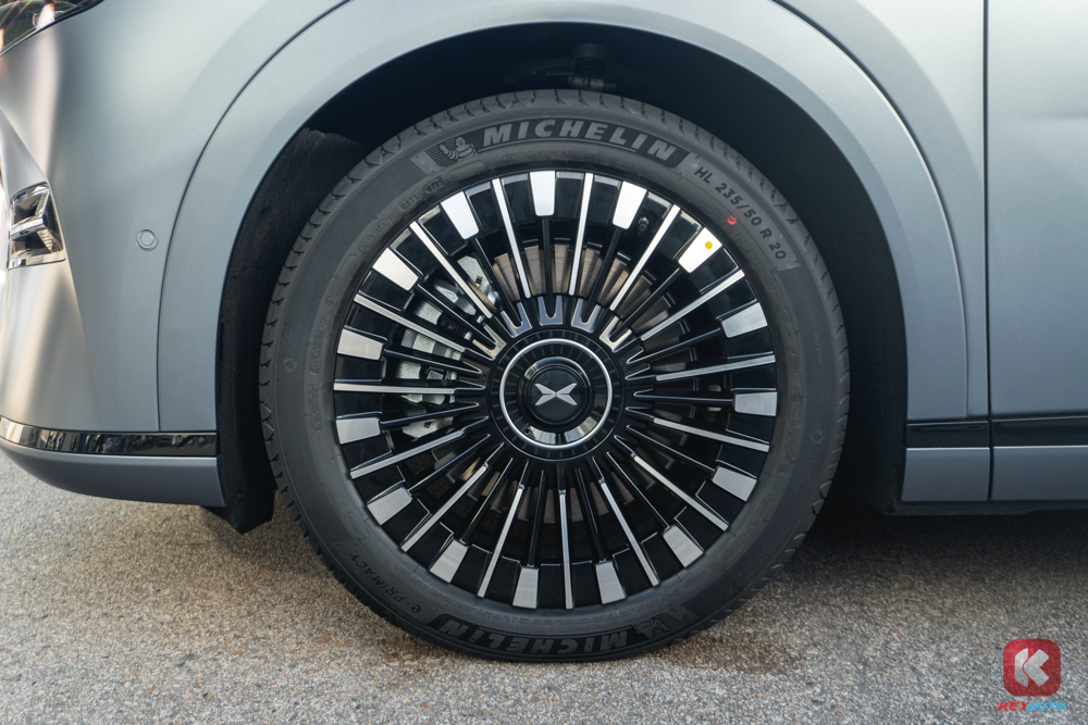 外观上,车头左右两侧新增了一些小饰条,车尾增加发光 XPENG 厂徽,脚下换上新的 20 寸星耀悬浮轮圈,采用跟 Rolls-Royce 同款动态定轴悬浮技术。