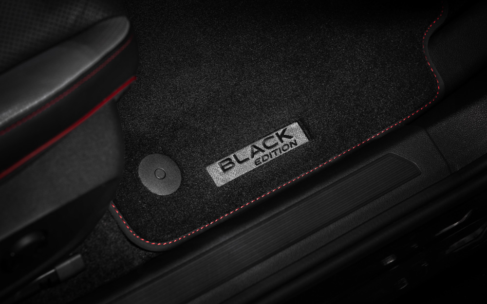 The interior of the Golf GTI Black Edition also boasts unique accessories, including Black Edition floor mats and a specially designed Black Edition owners' box complete with a Volkswagen keyholder and a Certification of Authenticity. These details underscore the car's exclusivity.